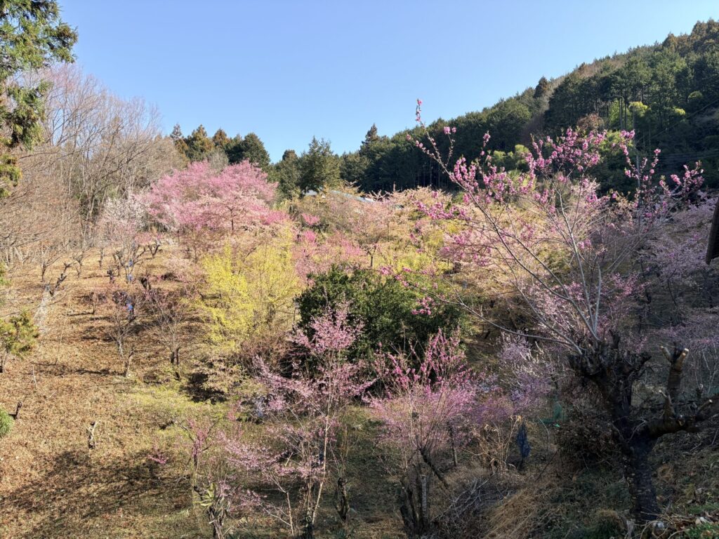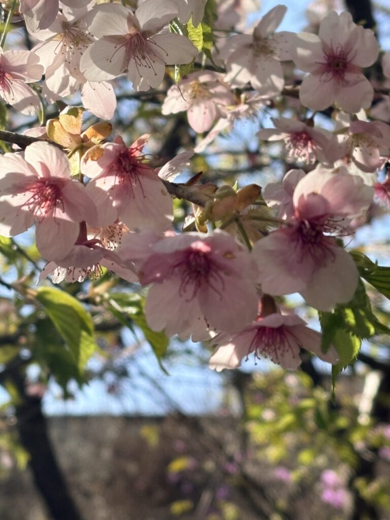 河津桜ほど早くないけど、早咲きの桜や桃っぽい花が咲いていて、すごくきれいでした。