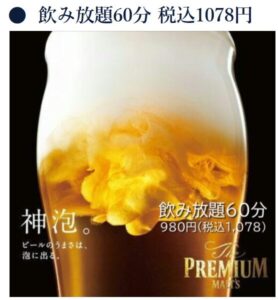 🍺 飲み放題60分 980円(税込1,078円)!